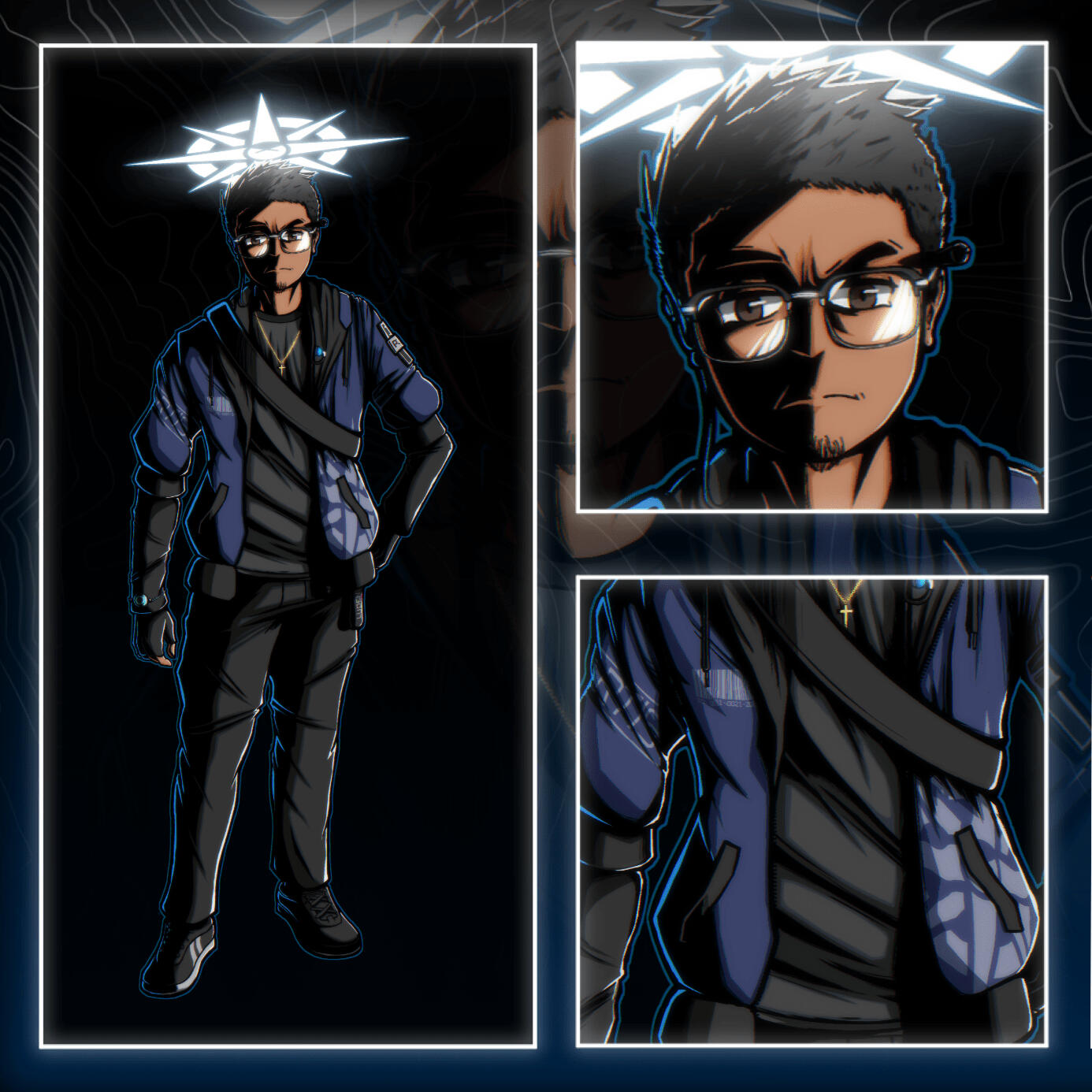 His origins are extraordinary: as an infant, Polaris and his mother perished in a voidout. On his Beach, a mysterious woman resurrected him, leaving black veins as proof of his unnatural return. Soon after, BRIDGES discovered him crying in tar near Edge Knot City. Deadman took him in, realizing the child’s existence bent the line between life and death. Fitted with the prototype stabilizer, a blue halo crowned his head, tethering him to life. Deadman named him Polaris Freeman—a star reborn from tar.Growing up, arrogance led to his exile from Edge Knot City. Yet in solitude, he became a silent savior: recovering cargo, battling MULEs and Terrorists, and shielding the UCA’s roads from BTs. For two years he wandered, hated yet indispensable, embodying a truth he accepted—he was reborn to burn for others, even in exile.